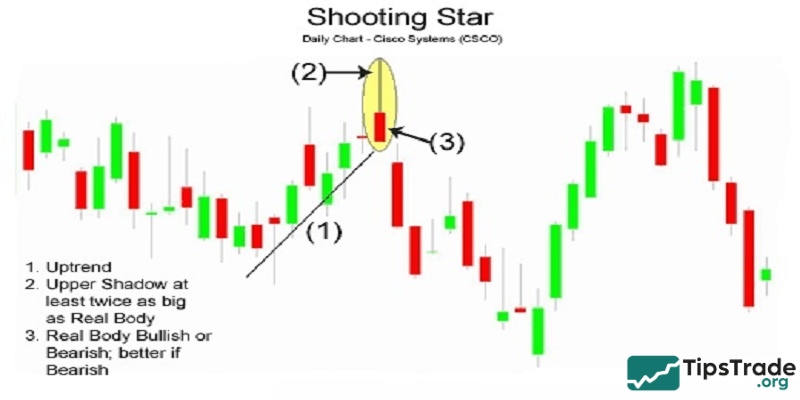The Shooting Star candlestick, also known as the Inverted Hammer, signals a potential bearish trend. In technical analysis, the Shooting Star is considered a two-candlestick formation: the first candle is a strong bullish candle, while the second candle is the actual Shooting Star.