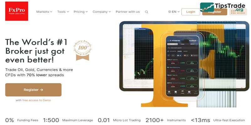 FXPro is a well-known CFD broker established in 2006, offering a wide range of instruments across six asset classes. These include forex pairs, indices, metals, energies, shares, and futures, giving traders multiple options to diversify and strengthen trading strategies. FXPro is regulated by respected authorities like the FCA in the UK and CySEC in Cyprus, ensuring strong security protections. The broker is valued for robust trading infrastructure, offering MetaTrader 4, MetaTrader 5, cTrader, and its own proprietary FXPro platform. This combination makes FXPro an excellent choice for traders seeking fast execution, advanced features, and diverse tools supporting consistent trading performance.
