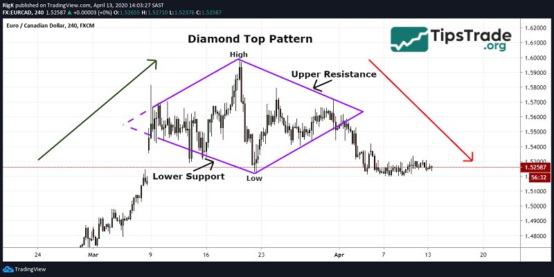 After the price breaks below the lower right side of the diamond, the price will reverse and begin a downtrend. Therefore, the Diamond Top pattern is a reversal pattern that signals a potential end to an uptrend and a shift to a downtrend.