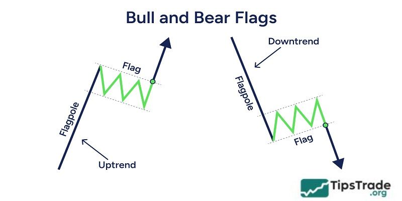 Unlike the rectangular pattern, the flag pattern has an additional short-term adjustment phase, creating a distinctive shape resembling a flying flag. There are 2 types of flag patterns: