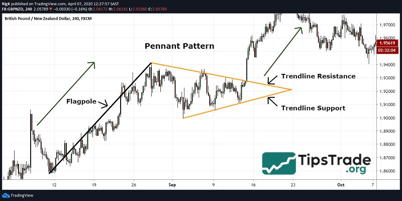 After a period of strong price volatility, the market often goes thru a short-term accumulation phase, forming a pennant pattern. This is a sign that the forces driving the initial trend are still strong, and the trend will continue in the near future.