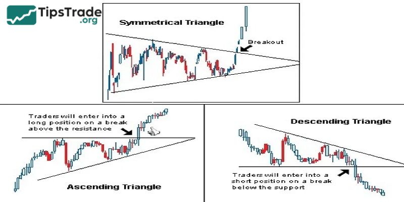 The triangle pattern is a price pattern characterized by the gradual convergence of support and resistance lines, forming a triangle-like shape. This pattern often appears after a strong trend and signals a pause in that trend because neither buyers nor sellers are decisive. This model has 3 forms: