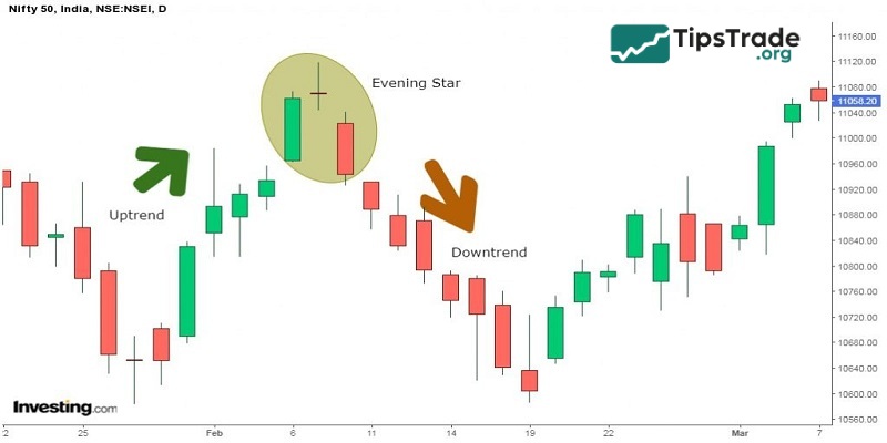 The Evening Star candlestick is one of the most commonly used multi-candlestick patterns in technical analysis due to its strong reversal signals. However, many investors still do not fully understand how to identify this pattern on price charts or how to apply it effectively in trading. Therefore, let’s join Tipstrade.org in exploring the most fundamental information about the Evening Star candlestick through this article.