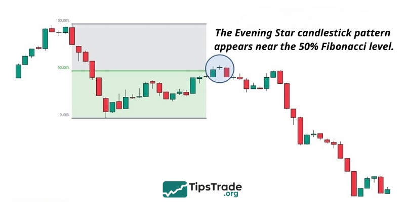 - Look for the Evening Star candlestick forming near the 50%, 61.8%, or 78.6% Fibonacci levels.