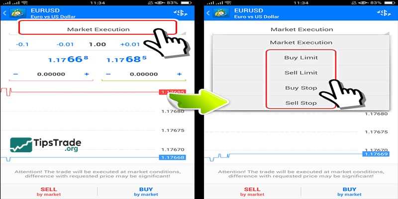 With this interface, you will see some common order types when trading in the foreign exchange market, which are: