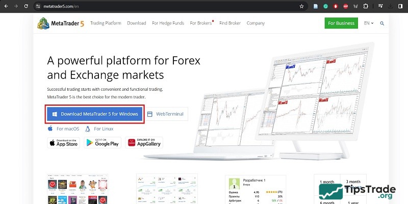 - Step 1: Visit the official MetaTrader 5 download page and select “Download MetaTrader 5 for Windows”.