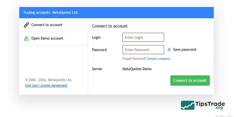 - Step 4: Open MetaTrader 5 and select “File” > “Login to Trade Account.” Enter your username, password, and select the appropriate server. Check “Save password” if you want to store your login details, then click “Login” to complete the login process.
