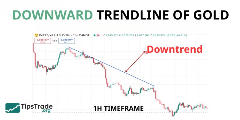 In contrast, in a downtrend, the price continuously forms lower lows (LL) and lower highs (LH). The trendline is drawn by connecting the highs, forming a downward-sloping line.