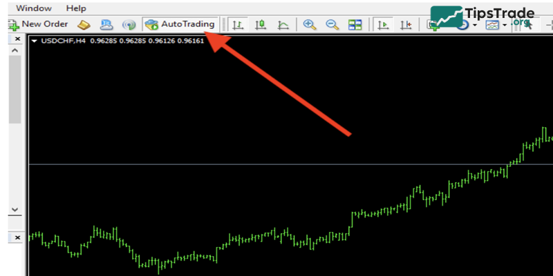 - On the toolbar, find the Auto Trading button and click it until it turns green (Play icon).