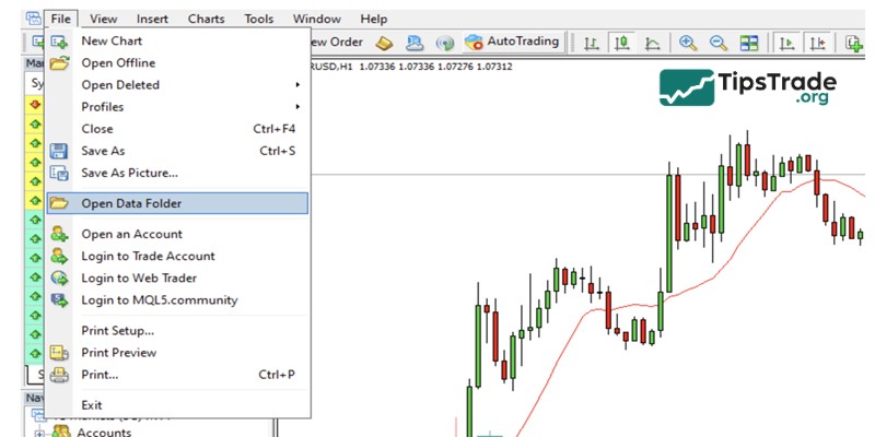- Open the MT4 software: On the menu bar in the top left corner, select File