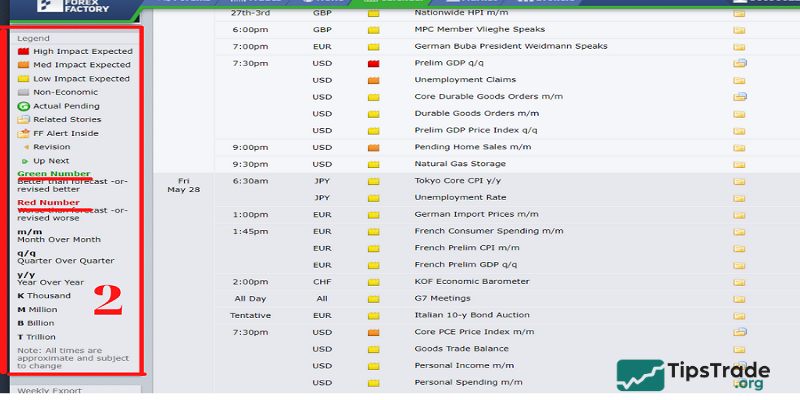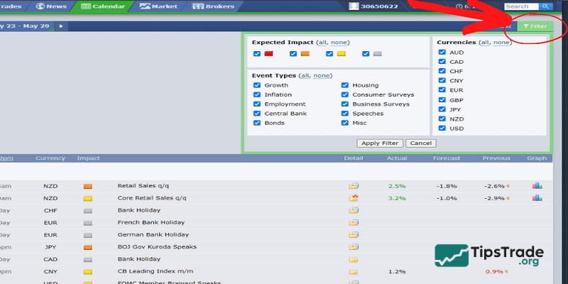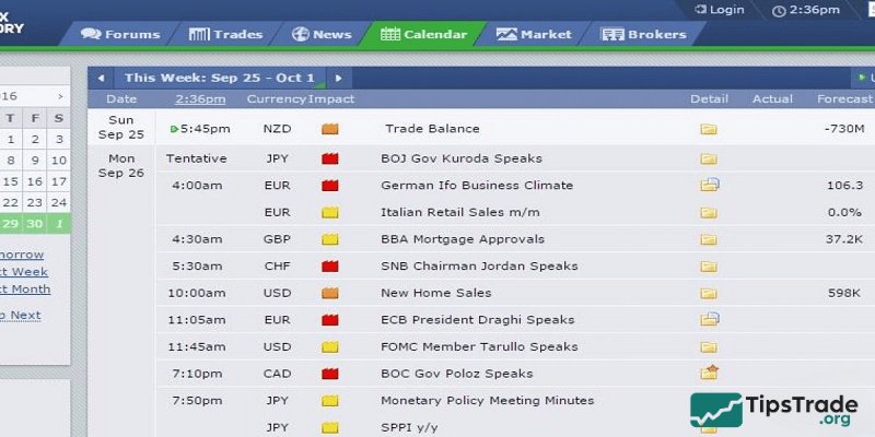 This is where all important economic events that have occurred are displayed. There are countless events taking place each day; however, not all of them are relevant to Forex trading. Therefore, we need to filter out unnecessary information by using the filters provided by Forex Factory.
