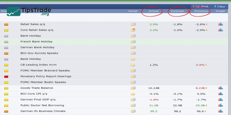 Typically, at the time of the news release, traders focus primarily on the Actual data. They compare these figures with the Forecast to assess whether a currency pair is likely to rise or fall, and then decide whether to buy or sell in order to make a profit.