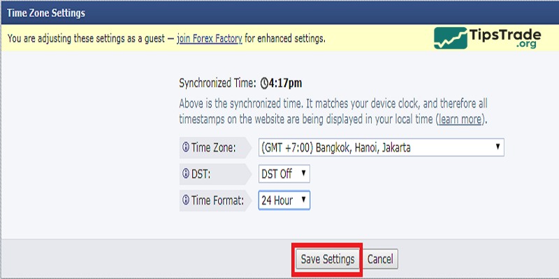 In fact, you can still access all the information on Forex Factory without registering an account. However, if you want to customize the platform to suit your personal preferences, registration is required so that all your settings are saved and you won’t need to reconfigure them in future visits.