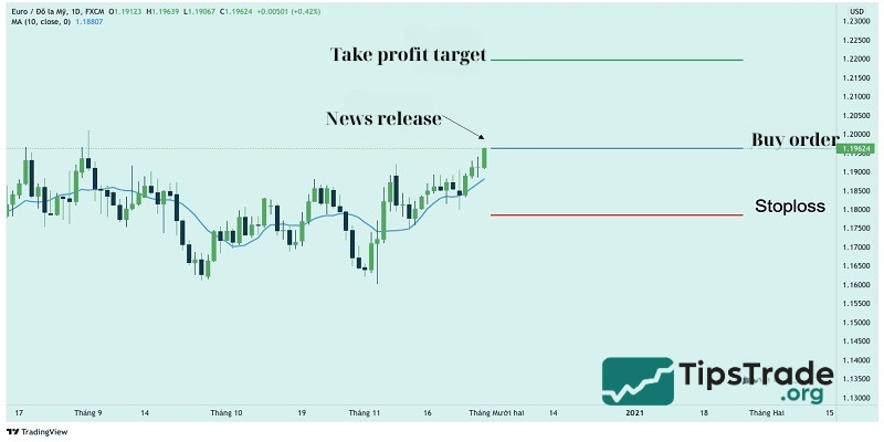 - Transaction management:If the volatility created after the news pushes the market towards the profit target, traders can consider taking half of the position. If there is still more momentum in the market, move the stop up to the target level.