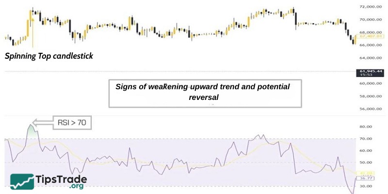 Since the Spinning Top candle does not provide a clear signal to enter a trade, you need to combine it with other analysis tools or wait for confirmation from the following candles to determine the trend before making a trading decision. Below are some basic steps to effectively trade with the Spinning Top candle: