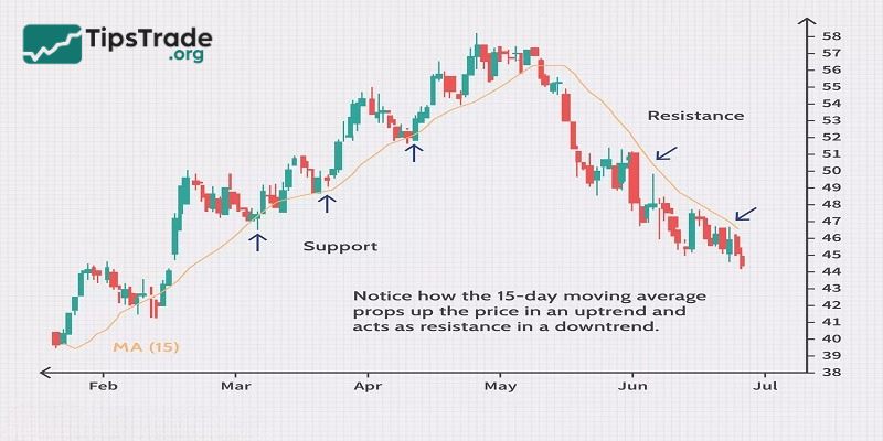 In addition, people also use the average price line as a support/resistance line – the nature of this line helps to smooth out short-term price noise signals. When the price is below the average line, it will create resistance, and when the price is above the average line, it will create support.