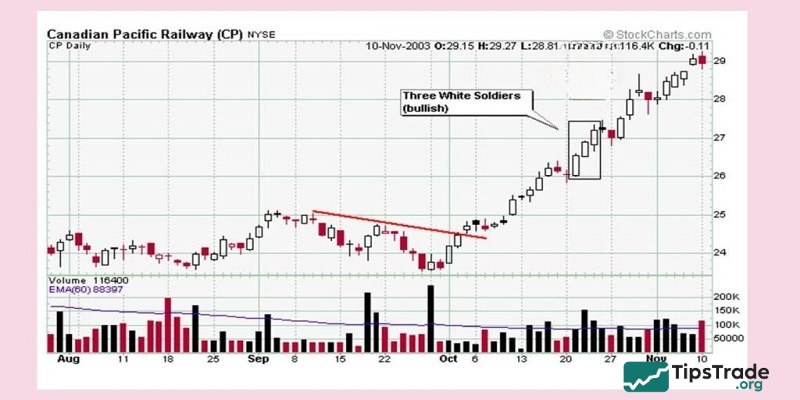 The Three white soldiers candlestick is one of the most reliable signal patterns in the market. However, not everyone truly understands its signs or how to identify it correctly. If you feel the same way, let’s join Tipstrade.org in taking a closer look at its meaning and how to trade using this candlestick pattern below.