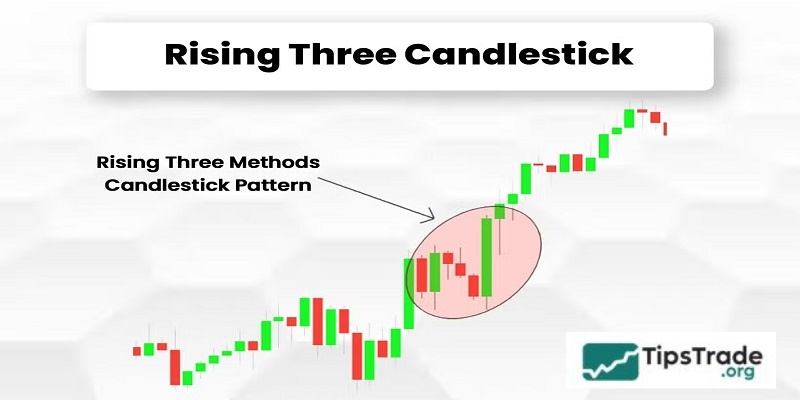 The Rising Three Methods candlestick pattern is used to predict the continuation of an uptrend after a short-term correction period. This model consists of 5 different candles (2 bullish candles, 3 bearish candles).
