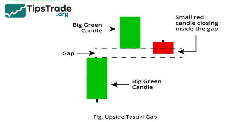 - The Upside Gap Tasuki candlestick pattern indicates that the closing price of the third candle is an ideal entry point, and the upward gap between the first and second candles is considered a support area.