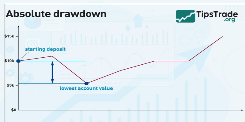 Absolute Drawdown is a concept that represents the level of loss calculated from the initial capital deposited into the account down to the lowest capital level. This metric is expressed as the absolute monetary loss (USD/EUR/…) rather than as a percentage (%).