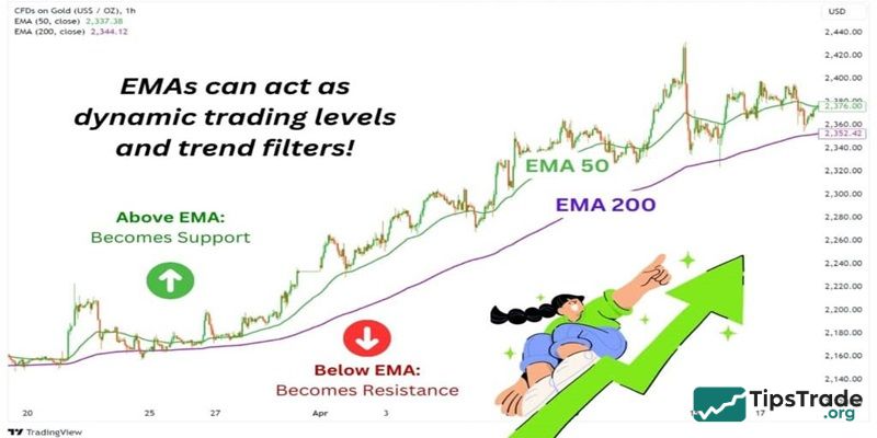 In the highly volatile world of financial trading, the EMA (Exponential Moving Average) is one of the most sensitive and effective technical analysis tools for investors to capture market trends. Unlike other indicators, this tool offers a more flexible perspective by emphasizing the most recent data, helping traders make accurate and timely trading decisions. So, what exactly is the Exponential Moving Average, and how can it be applied in the process of buying and selling financial assets? Let’s explore this in detail with Tipstrade.org through the content below.