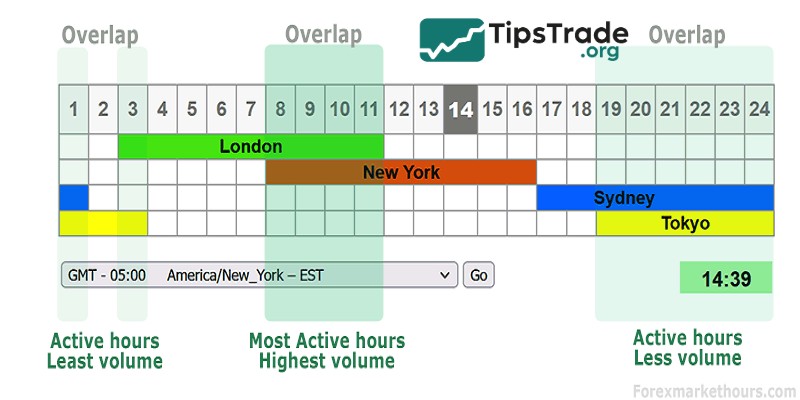 - New York session (or American session): Strong trading, especially with currency pairs related to USD.