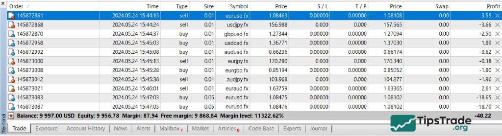 - Check: Monitor the EA’s performance in the Experts tab of the Terminal.