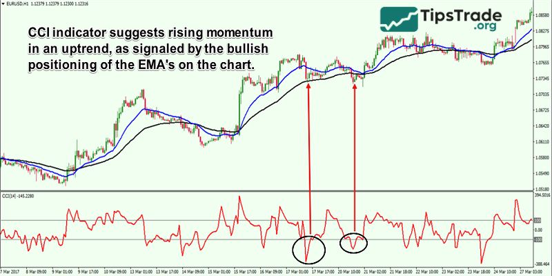 The CCI indicator can also be used to determine market trends. When the CCI indicator moves and remains above the 0 line, this indicates that the uptrend is dominant. Conversely, when the CCI moves and remains below the 0 line, this indicates that the downtrend is dominant.