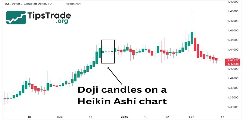 Doji candles on a Heikin Asshi chart
