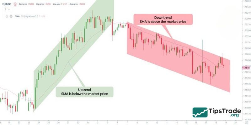 When the price line is above the Simple Moving Average, the indicator acts as a support level. And conversely, the Simple Moving Average functions as a resistance level. Since the Simple Moving Average is not a straight line but fluctuates along with price movements, it is considered a dynamic support and resistance level. Depending on the period of the Simple Moving Average, traders can evaluate whether the support or resistance level is strong or weak.